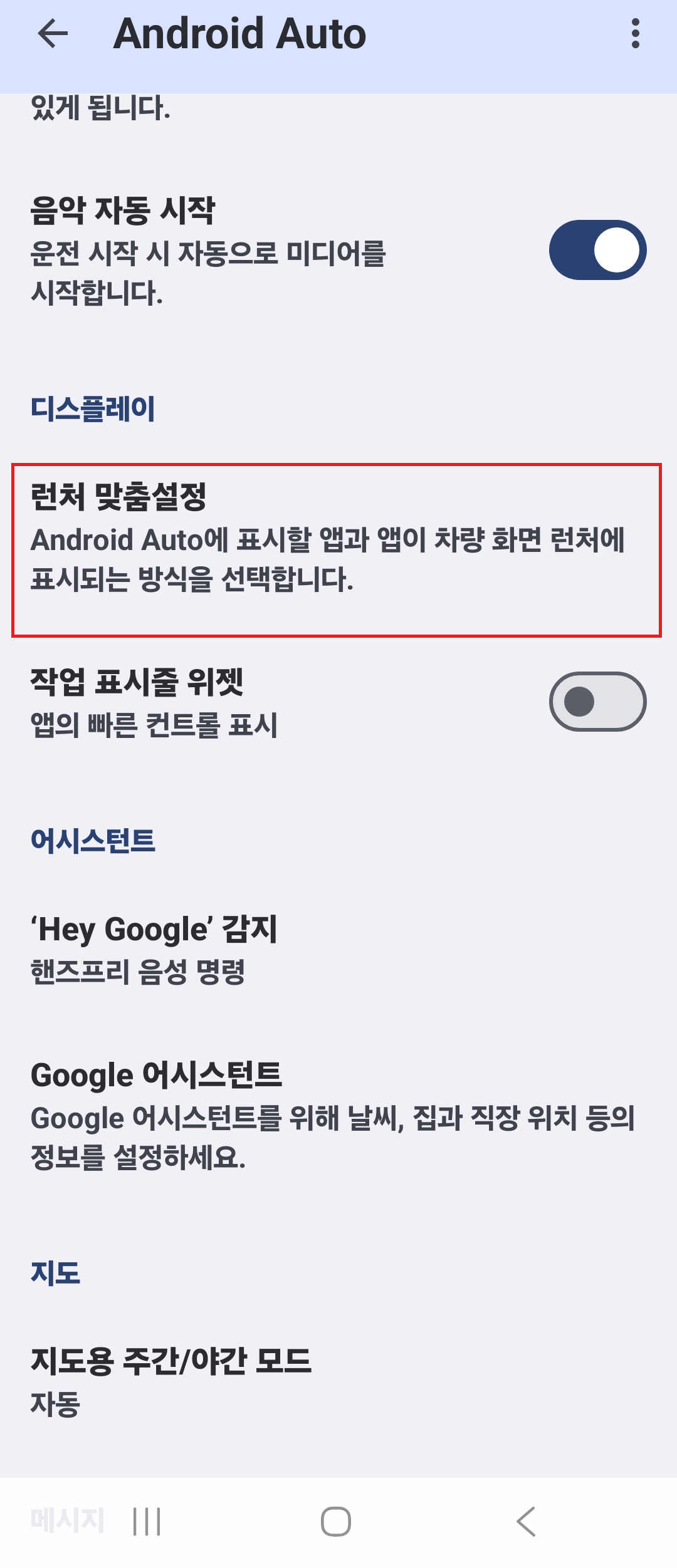 안드로이드오토에 런처 맞춤 설정 클릭후 뉴스 체크박스 해제~!